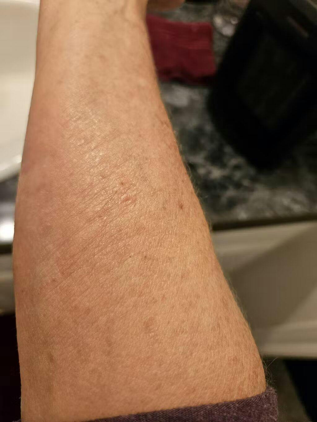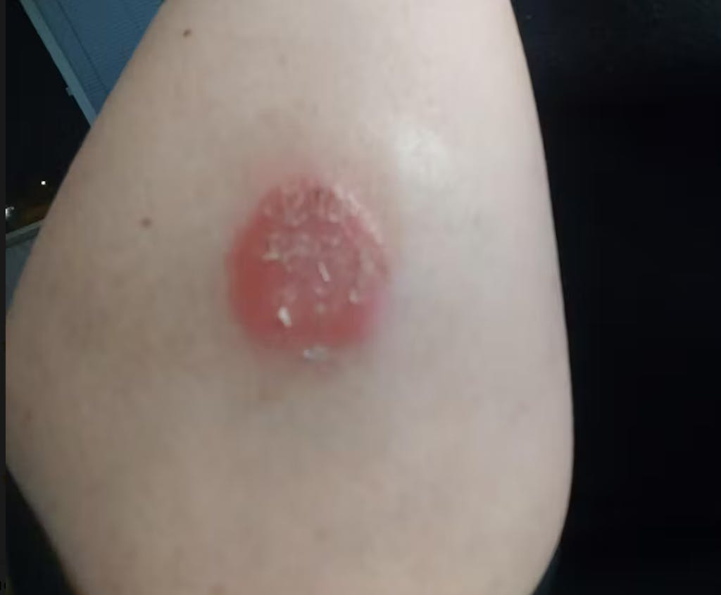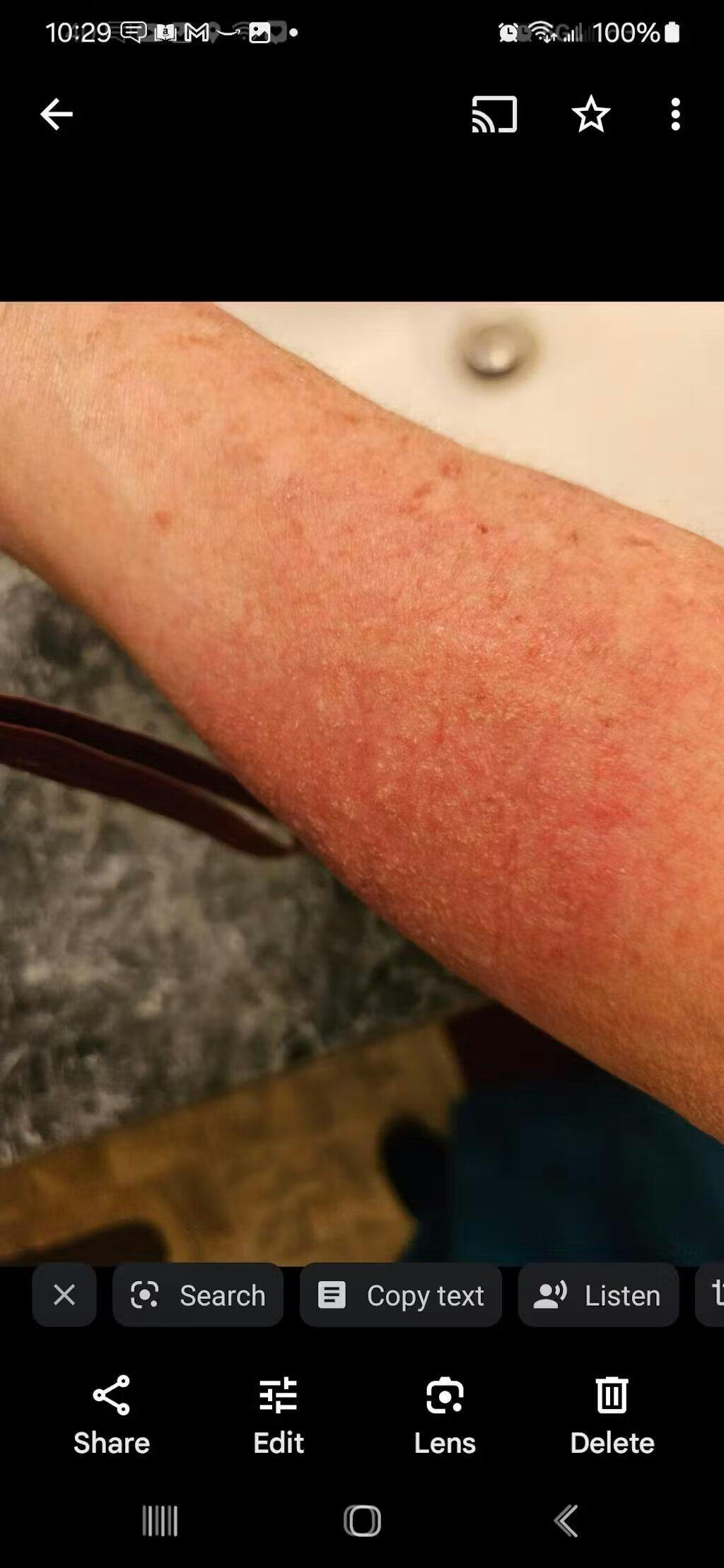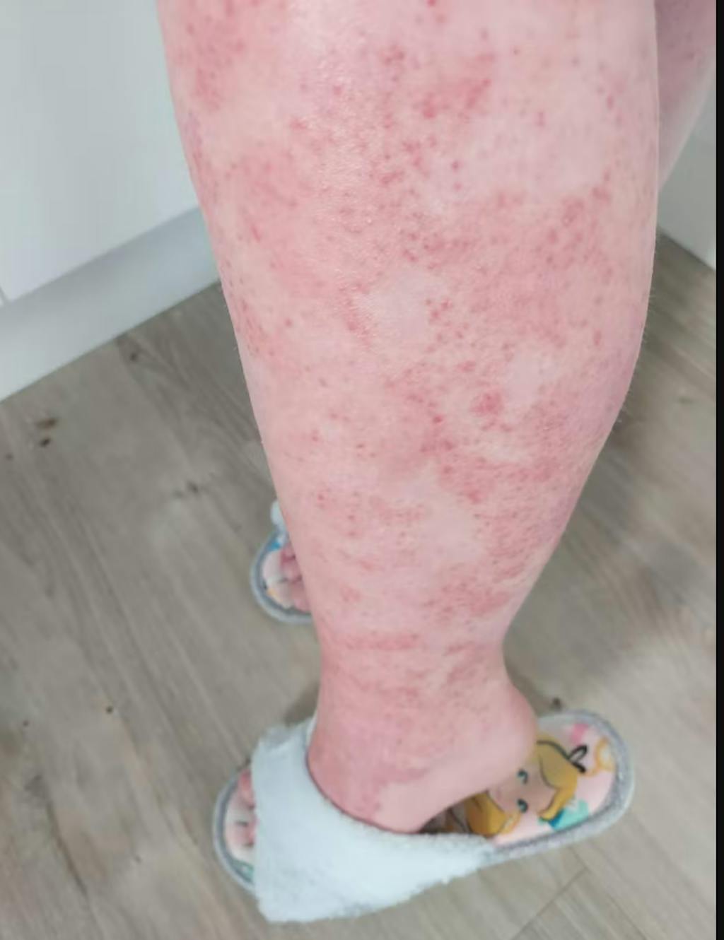 I’m not sure exactly what I had – it looked like a rash with red blisters, peeling skin, and intense itching.