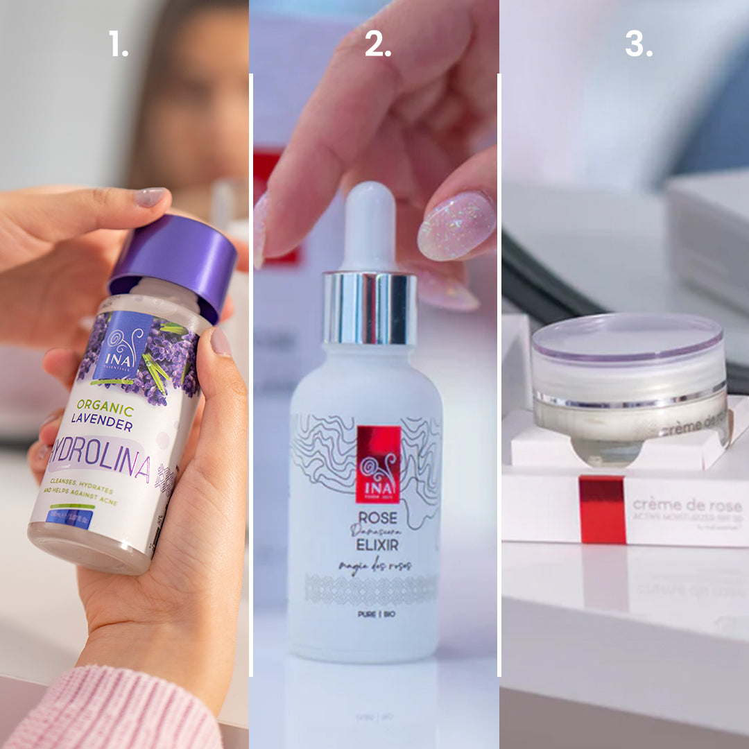 With its powerful antibacterial and pH-regulating properties, Lavender Hydrolina works wonders for your skin. The bioactive components found in lavender water - linalool and linalyl acetate limit the growth of acne-causing bacteria. In this way, the skin microbiome is in perfect balance. Lavender Hydrolina thoroughly cleanses pores, preventing the appearance of pimples and providing a radiant and smooth skin texture.