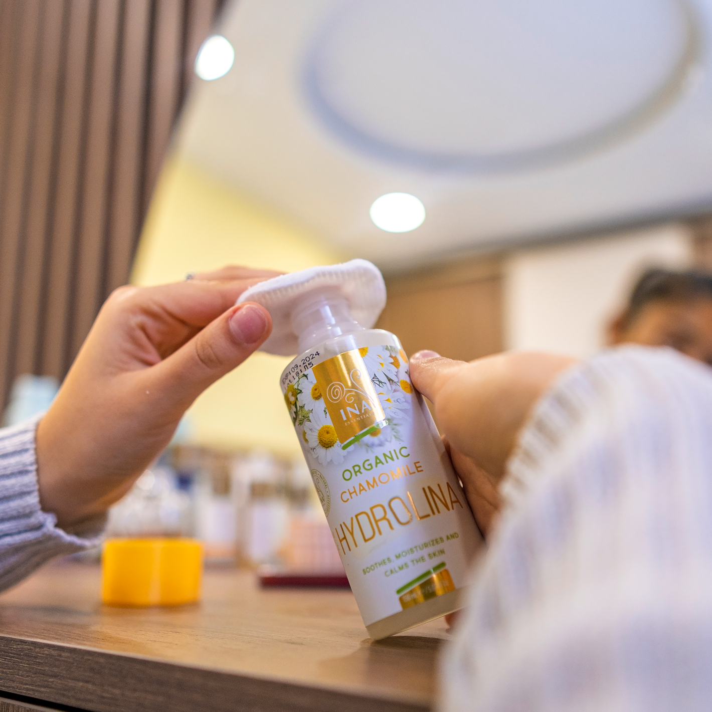 Transform your skin with Organic Chamomile Hydrolina, our family-made answer against eczema and irritated skin with soothing and regenerative effects. The perfect match for normal, combination, dry and sensitive skin.