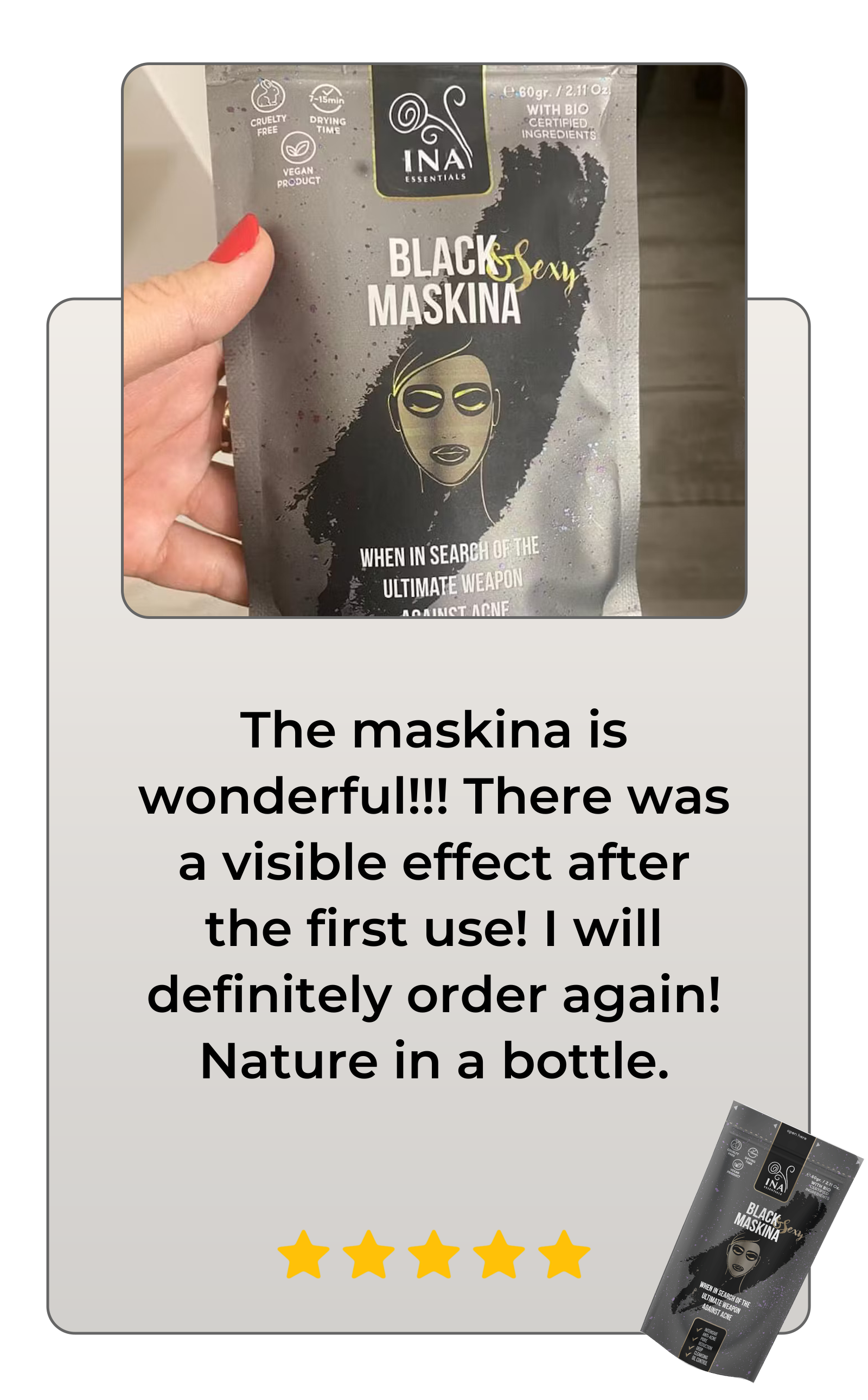 *MASKINA 60g is enough for 12-15 uses.