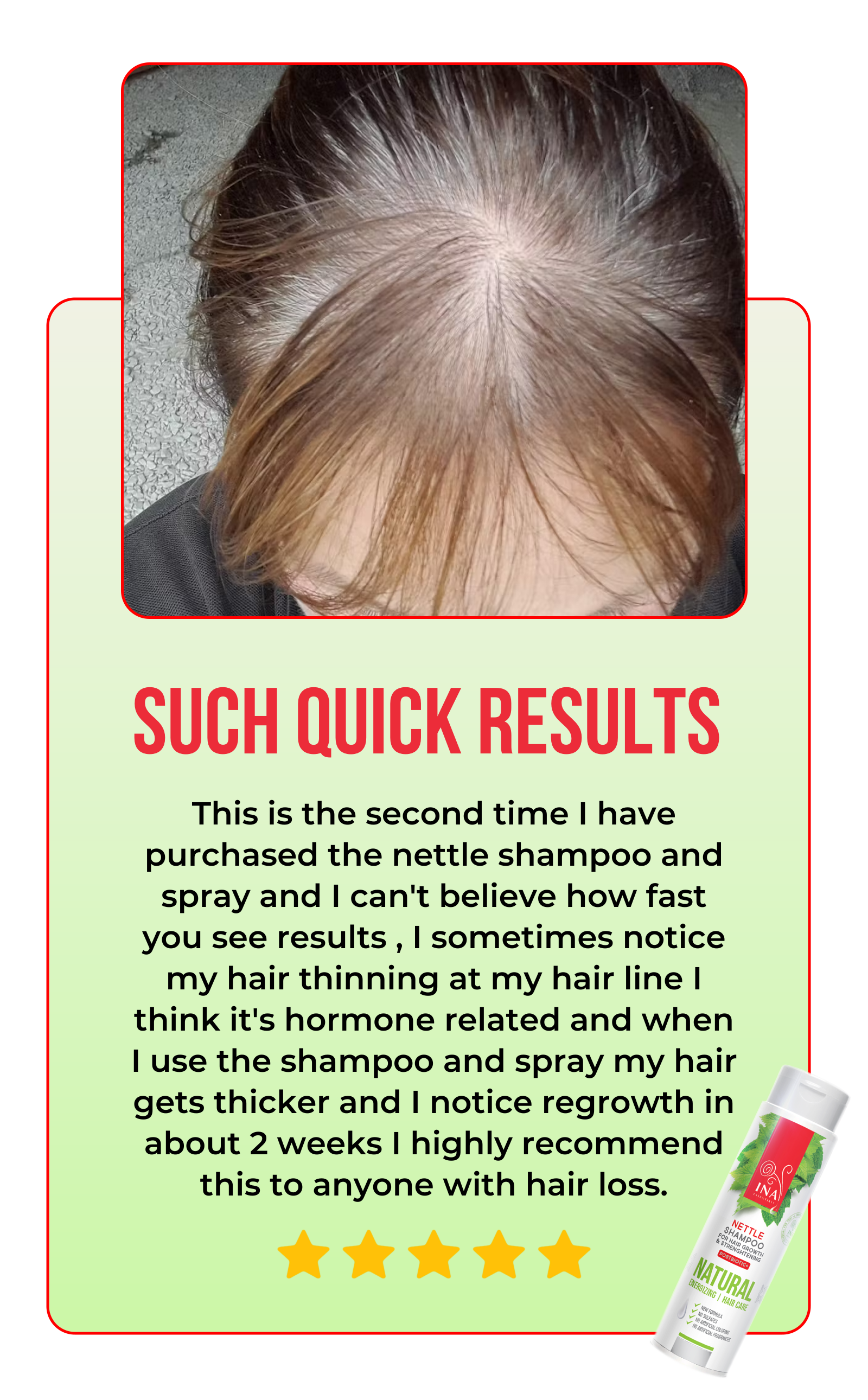 Our Hair Loss RoutINA™ has more than just pretty packaging, it has proven results. With an incredible customer satisfaction rate of over 90% , these products have proven their effectiveness in reducing hair loss and improving the overall health of the scalp and hair. Don't just take our word for it, read our customer stories: HERE.