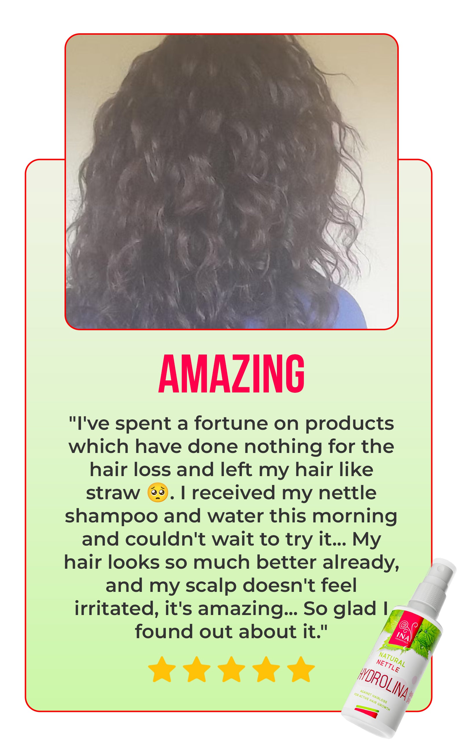 - Step 1: Start your day by applying our 100% Wild Nettle Water - Hydrolina. Its powerful properties stimulate hair growth, reduce oiliness and nourish hair from the roots. RoutINA™ Wild Nettle Water - Hydrolina strengthens hair follicles, promoting hair growth, keeping it fresh and vibrant.