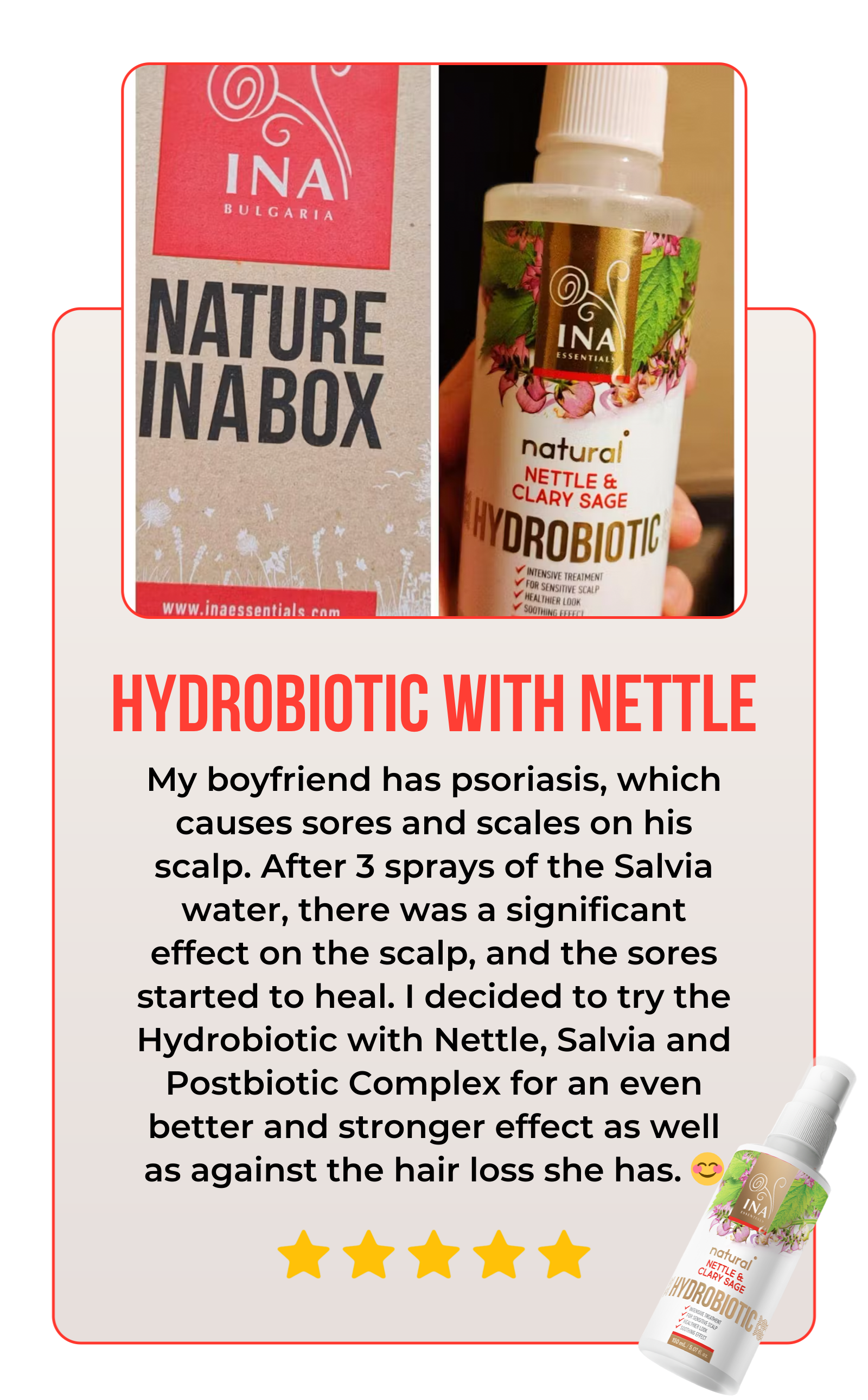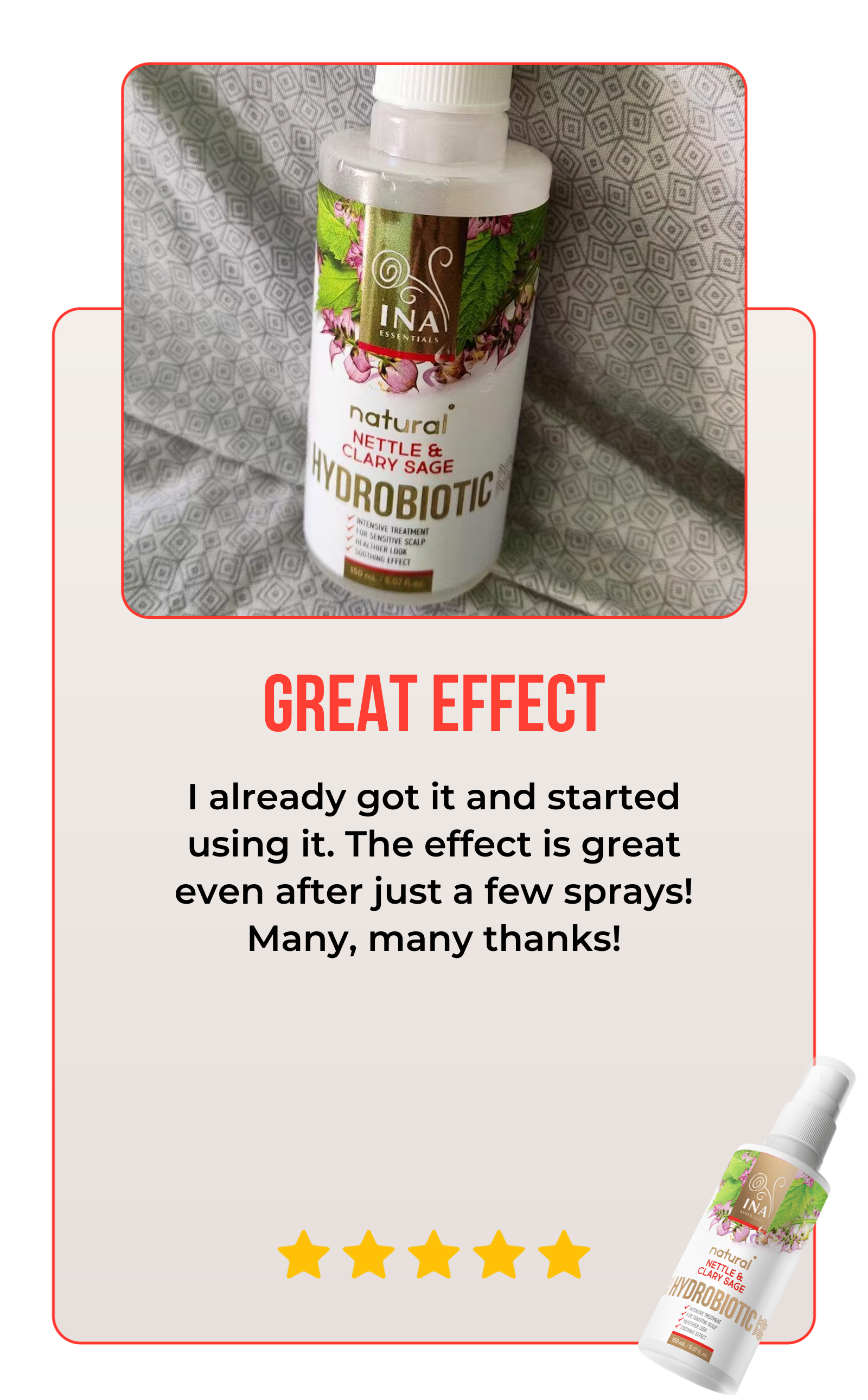 Hydrobiotic - Nettle and Sage is more than just a pretty bottle. Its action is confirmed by real customer reviews. With an impressive result of over 90% customer satisfaction, our product shows its effectiveness. Don't just trust our words. Read our customer stories HERE .